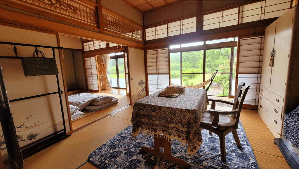 Their guest room was a Japanese-style room with tatami mats and futons, offering views of rice fields and nature right from the window. On clear nights, you could also see the moon and stars.