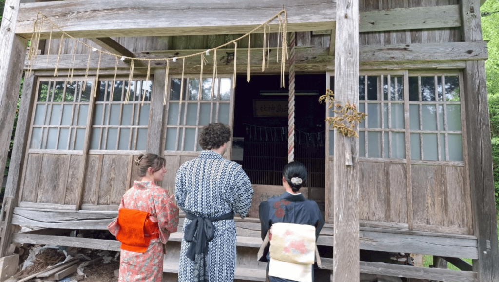 Lily also wore a kimono for the first time—it suited her perfectly! We visited the village shrine, prepared matcha, and enjoyed traditional Japanese sweets. Wearing traditional clothing naturally brings focus and makes the experience even more special.